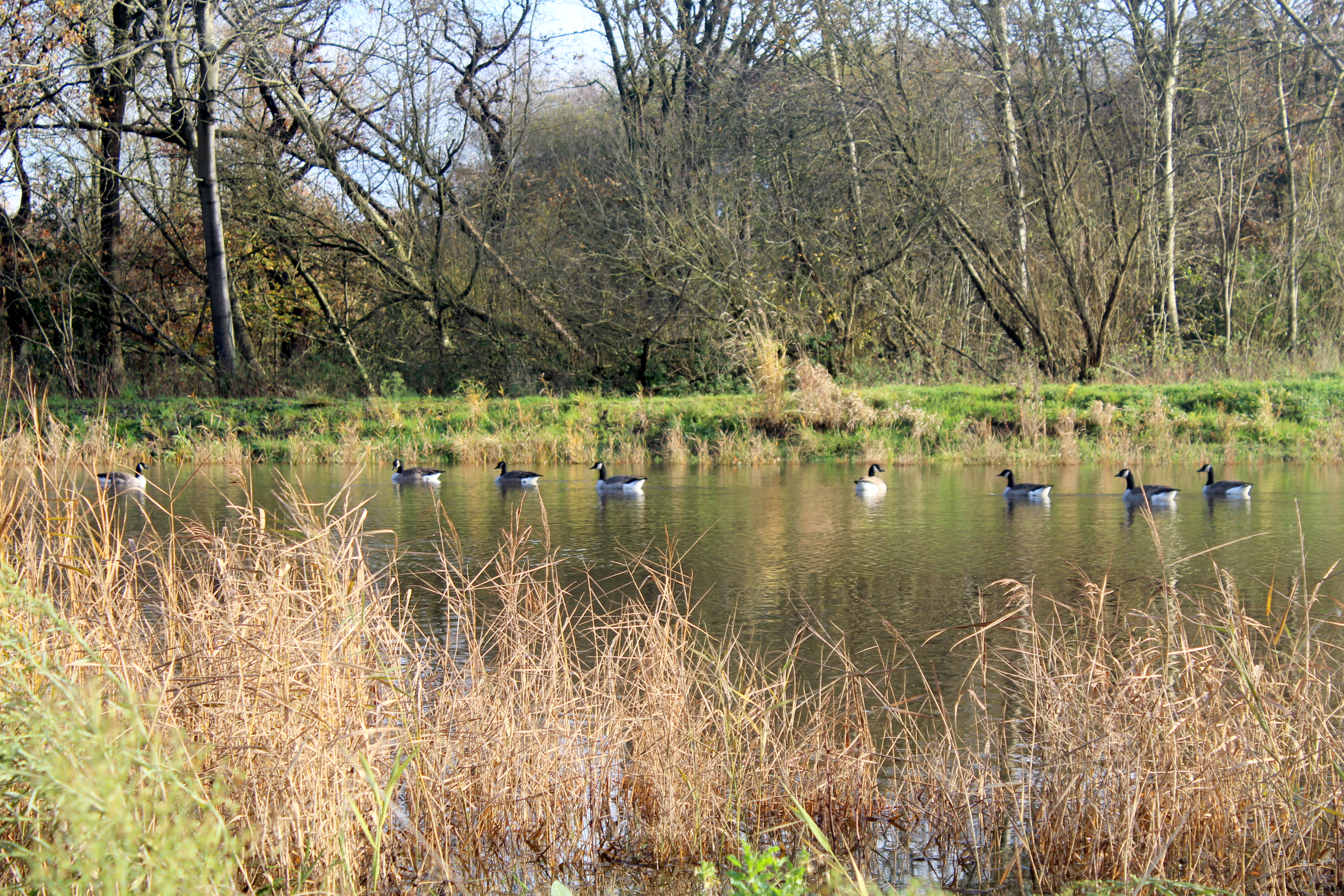 On the day that I visited there were a pair of swans, ducks, and a flock of geese. Grebes and tufted duck have also been spotted. When opened to the public the wetland will have observation areas for the public, as well as a café from where you should also be able to see the birds, in the one remaining farm building, which will also accommodate storage areas for the Lightbox art gallery and local drama groups. It is hoped that all the facilities will be complete for an opening on June 21 2015. Other plans include a biomass boiler using woodchip from the society’s land, which should be able to heat the building and drastically cut bills. There will also be a reed bed filtration system to treat sewerage.