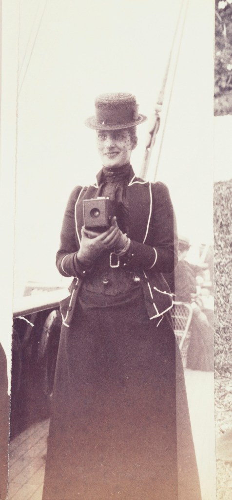 One significant supporter of this art was Queen Alexandra (1844-1925), the wife of King Edward VII, who promoted photography and was herself an amateur photographer. She had several Kodak cameras and took photos of family and friends. The exhibition displays an exquisite porcelain tea service with transfer printed photos taken by the queen.
