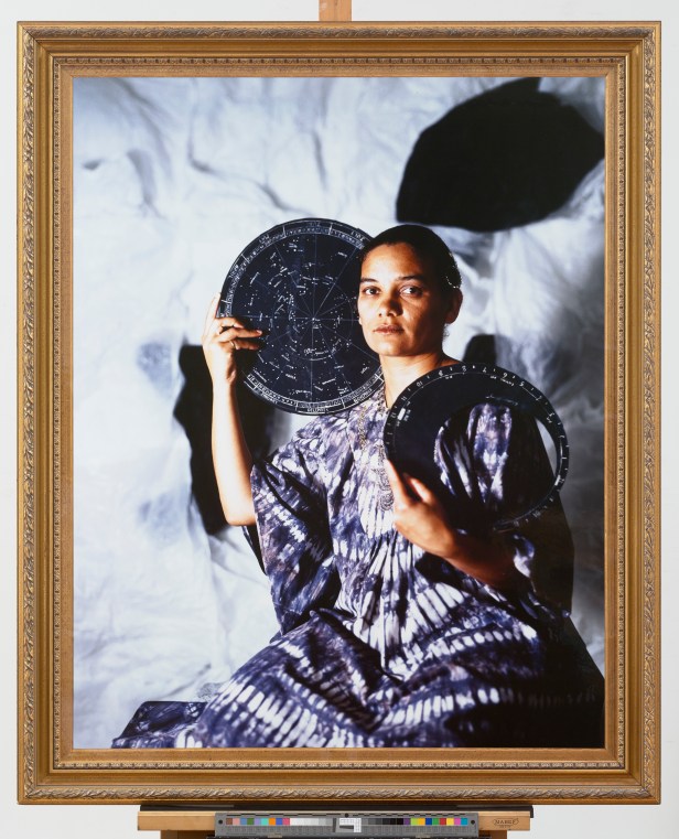 A subtler criticism comes within the works of Sonia Boyce, Maud Sulter, Frances Kearney and Suki Dhanda. Sulter and Boyce are pioneers in improving the conditions of black women. Boyce explores ironically the representation of her identity from the point of view of white society in photobooth portraits. Sulter pictures powerful women that personify the nine muses of mythology. Urania, the muse of astrology, is represented in an engaging portrait of a black woman in a dignified posture holding astrolabes.