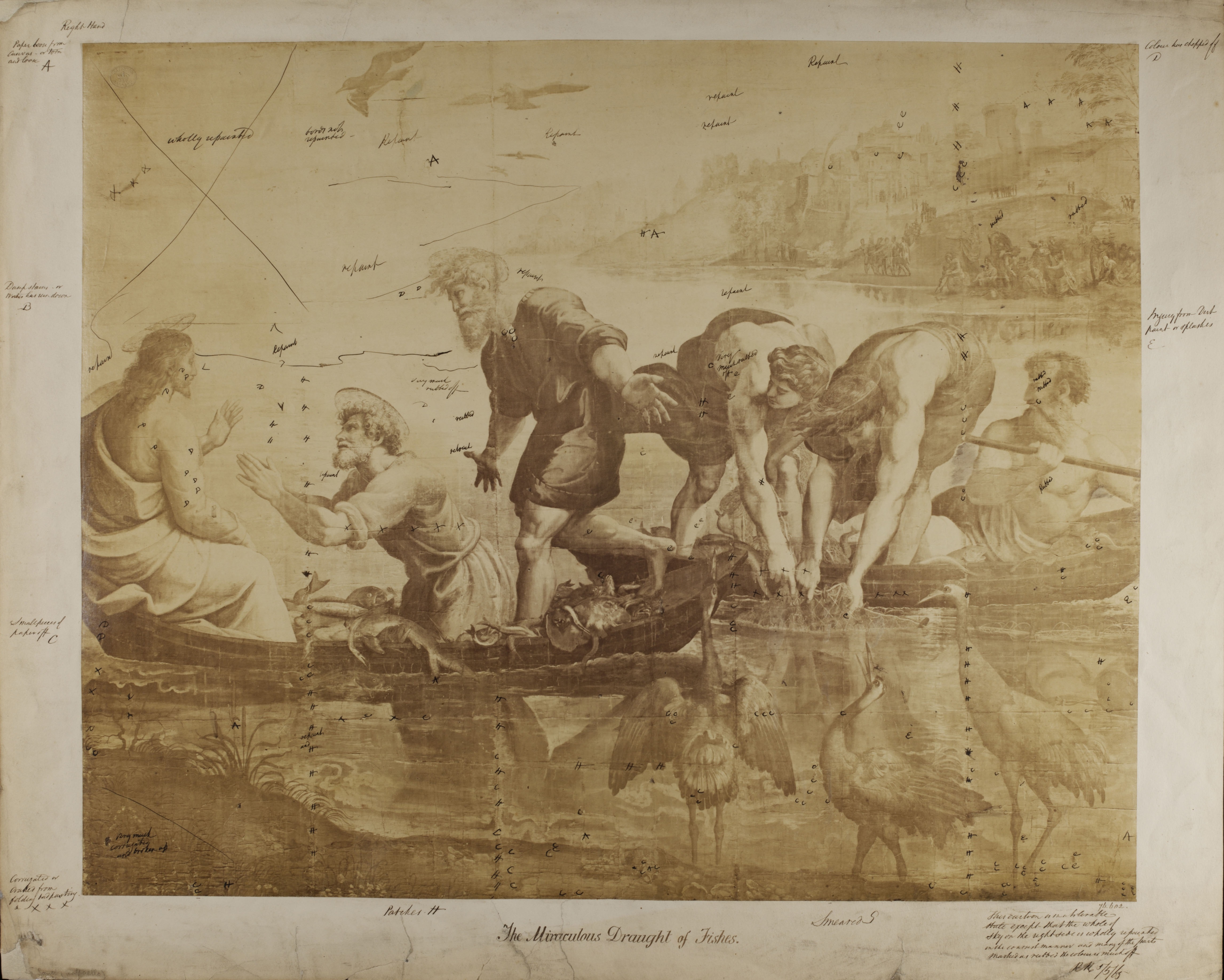 Prince Albert sent some of the reproductions to European royal households, private collections, museum curators and church authorities in order to promote his project, hoping that he would be allowed to make more copies of Raphael’s works around Europe. The different kinds of reproductions on display show different levels of the two main works under focus. At times they concentrate on specific details, which convey their dramatic characteristics, such as in the figure of St Andrew reproduced in print by Thompson or in the three apostles in the form of an albumen print attributed to Leonilda Caldesi.