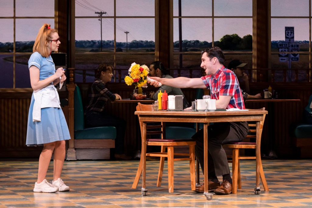 It is very much a musical theatre production that checks all the boxes. Smooth harmonies and choreography, swift-shifting set changes, a versatile ensemble, an instantly recognisable refrain and some real banging songs delivered as solos or group pieces. Both the book and score are very up to date with the modern pop songs, shaking off any likeness to the traditional American diner trope that the set presents. The storyline plays to Chelsea Halfpenny, who plays Jenna the lead waitress at the pie diner, a familiar face on several popular TV soaps which conceal her talents as a vocalist. Local boy Matt Willis, renowned for his success with boyband Busted as well as attending Woking High, normally plays the role of Dr Pomatter, Jenna’s gynaecologist and lover. On opening night, this role was admirably played by understudy Nathanael Landskroner. Shout-outs all round go to the cast and band for their high energy and synchronisation. New talent George Crawford has a show- stealing number that impressed and delighted the audience, and Michael Starke as Joe adds a surprising touch to the comedy.
