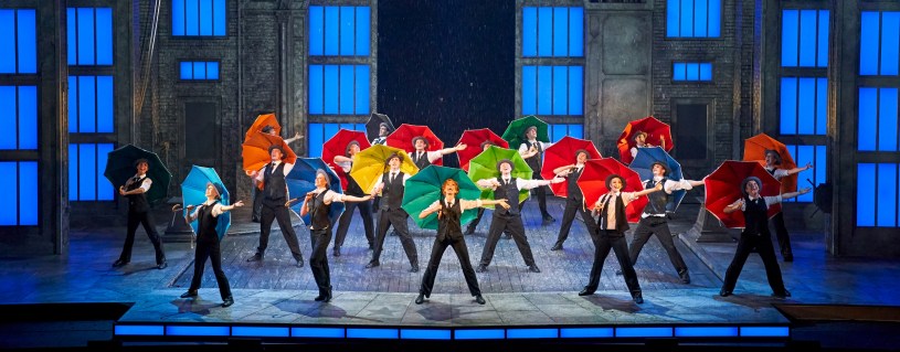 Act 1 glides flawlessly through the multiple instantly recognisable song and dance routines, bringing back classics such as Good Morning and Cosmo’s slapstick Make ‘Em Laugh routine which was admirably performed by understudy Alistair Crosswell on Tuesday evening’s performance. Moses Supposes was an unexpected but brilliantly choreographed tap dance number that ramped up the synergy leading to the end of Act 1 and the glorious Singin’ in the Rain, with yes, real rain. Cooper literally threw himself into this number and seemed to thoroughly enjoy soaking the front rows of the audience as he danced his way through the substantial pool of water on the stage. Act 2 is a dance indulgence in which costumes and lighting produce wowing effects that lead to a satisfying conclusion and finale.
