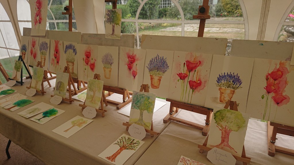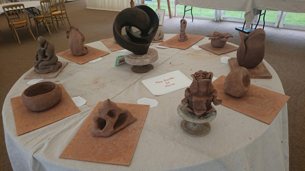 The project also included art workshops with different media, such as clay, watercolours and acrylics, and an art exhibition at the Harry Edwards Healing Sanctuary on 18 June in the Surrey Hills where all the works produced were on display. Also included there was a commissioned poem by Woking Writers Circle member Greg Freeman titled ‘This Garden’, and a picture of a cornfield at evening by Greg’s wife Gillian Freeman. A final art exhibition and dance performance will be at the Lightbox on 8 September at 6 pm.