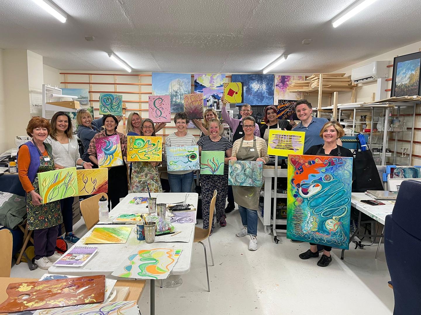 The project also included art workshops with different media, such as clay, watercolours and acrylics, and an art exhibition at the Harry Edwards Healing Sanctuary on 18 June in the Surrey Hills where all the works produced were on display. Also included there was a commissioned poem by Woking Writers Circle member Greg Freeman titled ‘This Garden’, and a picture of a cornfield at evening by Greg’s wife Gillian Freeman. A final art exhibition and dance performance will be at the Lightbox on 8 September at 6 pm.