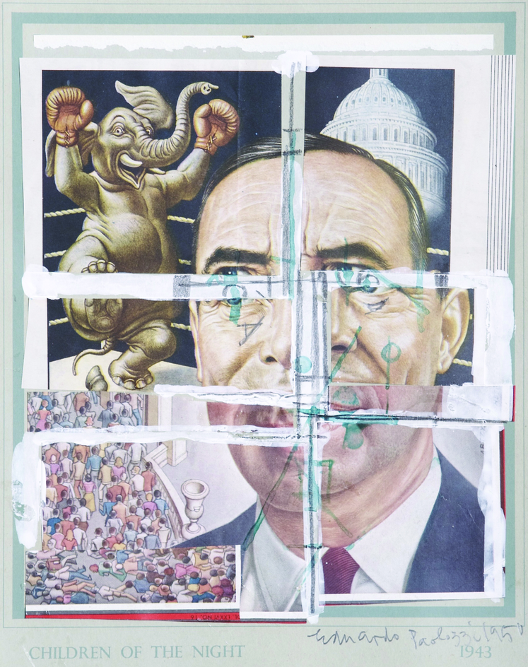 More variegated approaches were defined after the second world war by William Gear, William Turnbull and Eduardo Paolozzi. They worked in Paris too and were influenced by avant-garde movements such as Surrealism as well as by artists such as Giacometti, Brancusi, Picasso and Dubuffet. Gear’s ‘Figures’ (1946) and Paolozzi’s ‘Children of the Night’ (1950) convey the destructive effects of the war and the consequent fragmentation, expressed in their pictures with strong marks and broken figures.